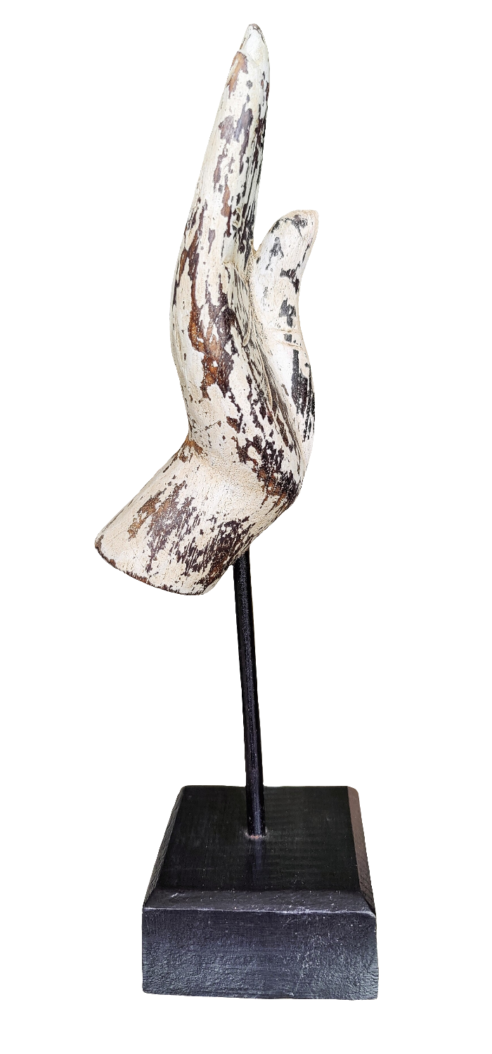 Beautiful, slender and elegant Thai Sukhothai Buddha Hand in distressed white finish.