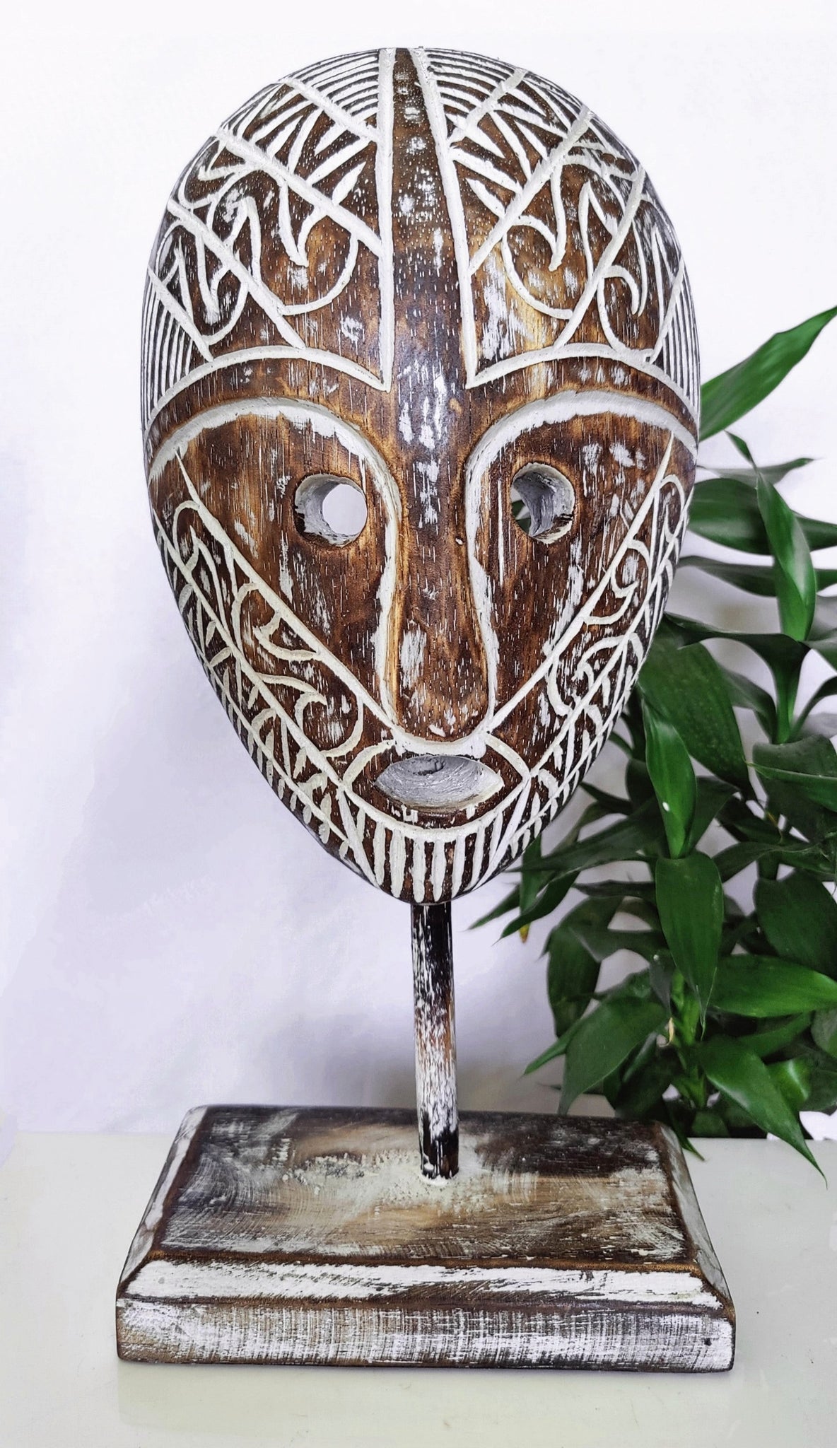 Such a perfect combination of artistic carvings and an excellent quality wood material. This wooden mask on stand is an outstanding tribal décor for your home.