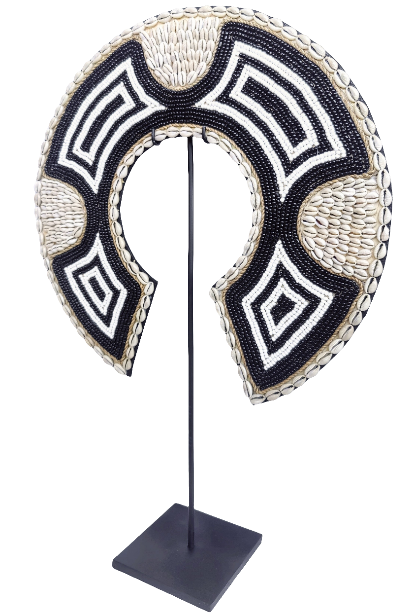 Papuan jewelry, has its own peculiarities. The easternmost island of Indonesia is rich in raw materials for jewelry such as shells. This shell necklace is usually used in Papua as a dowry when married. Used when there are traditional events. This art item is very suitable to be used as a home decoration with subdued colors and unique and beautiful motifs.