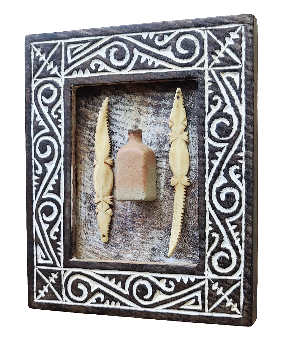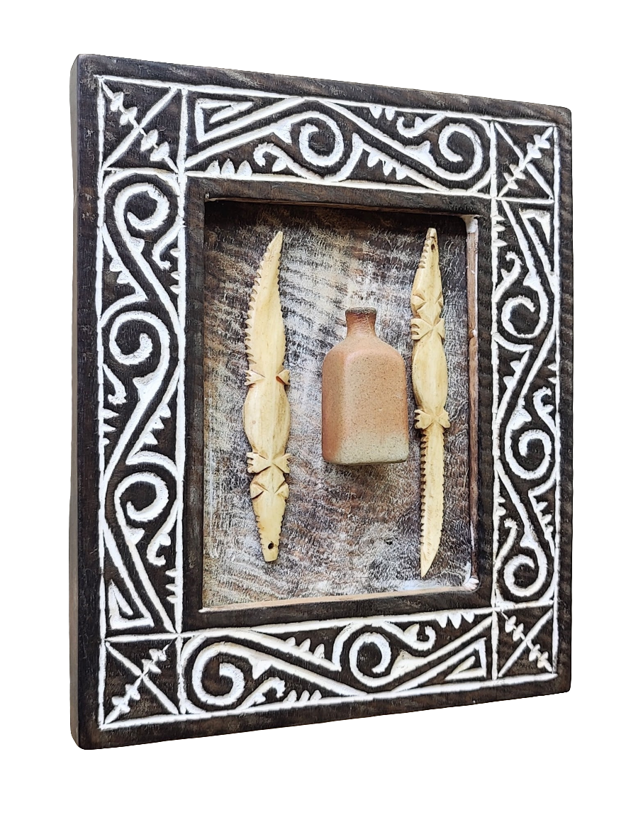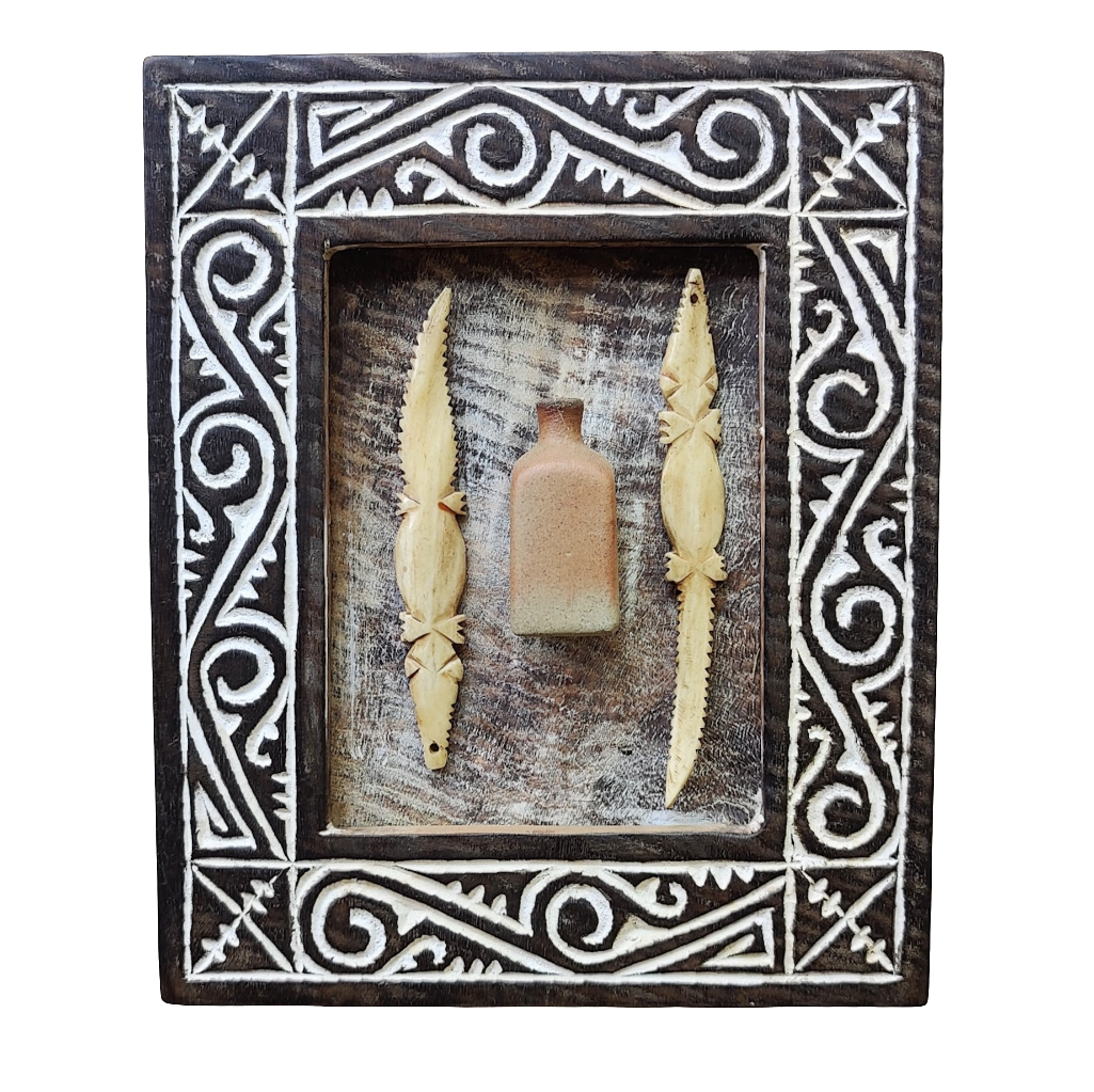 Handrafted solid wooden frame, wall hanging accent by Sumbanese crafters in Indonesia.