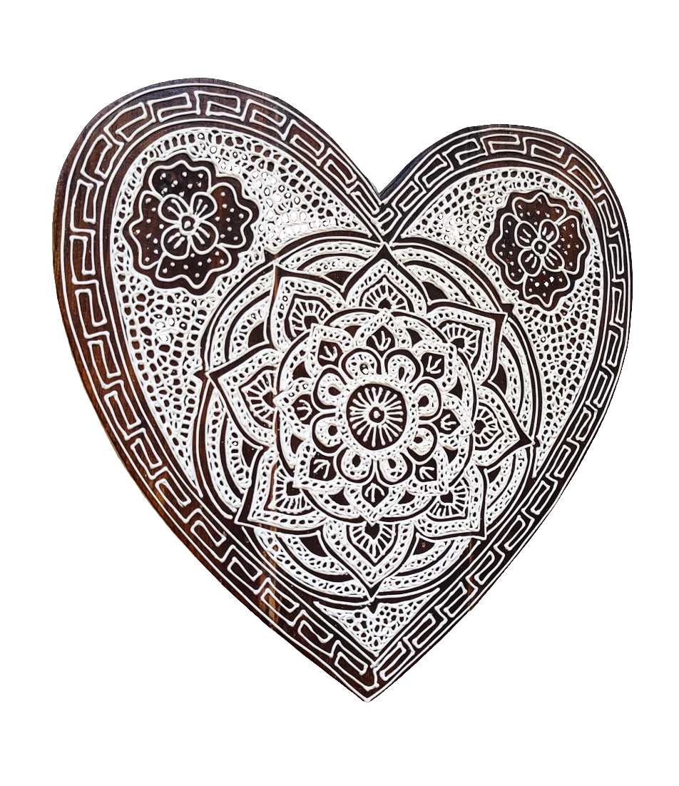 Handmade and painted, Heart-Shaped Wooden Wall Sculpture, "Floral Heart".