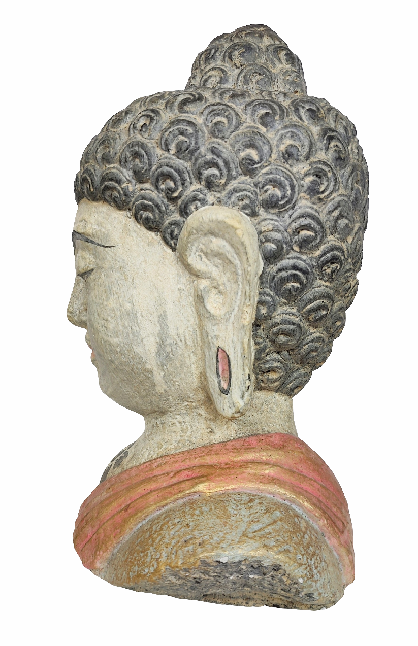 HOME DECOR: Beautiful Meditating Buddha Head Statue, hand carved and painted in Vintage/Antique look.