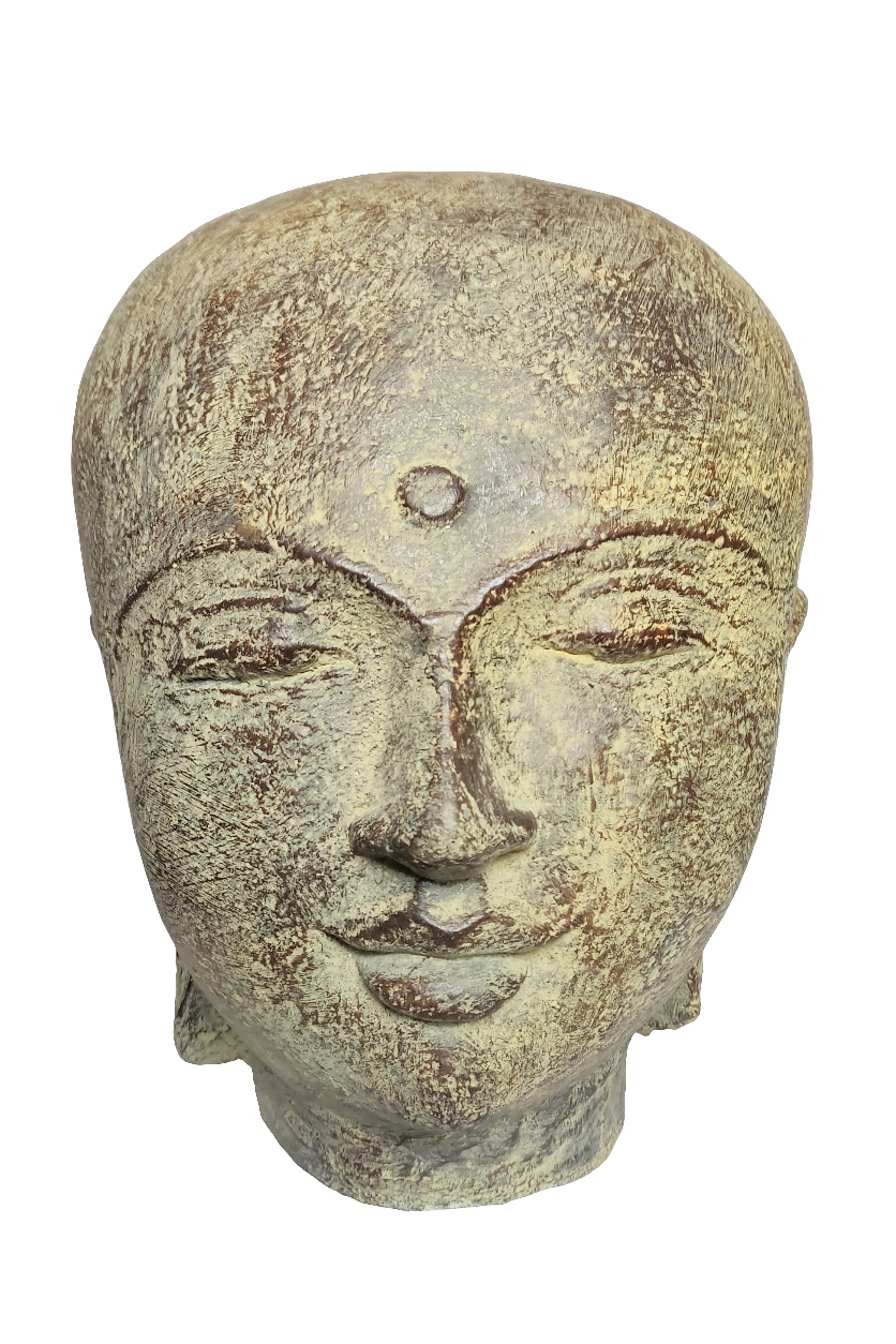 Peaceful and Serene Buddha Head hand crafted on the Island of Bali using age old stone casting techniques.