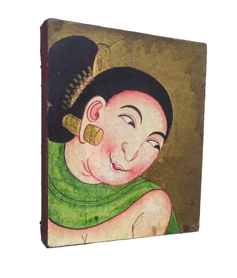 The Thai artist has hand-painted the lady with crackel technique and the canvas is stretched onto a wooden frame.