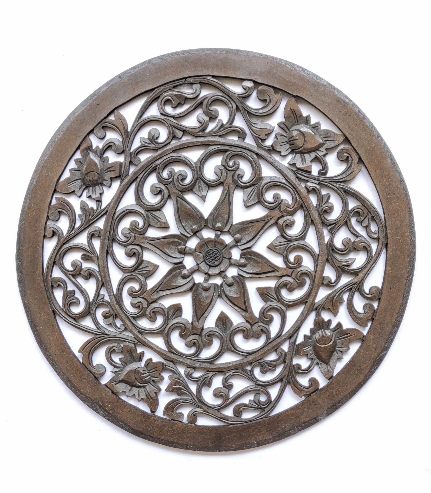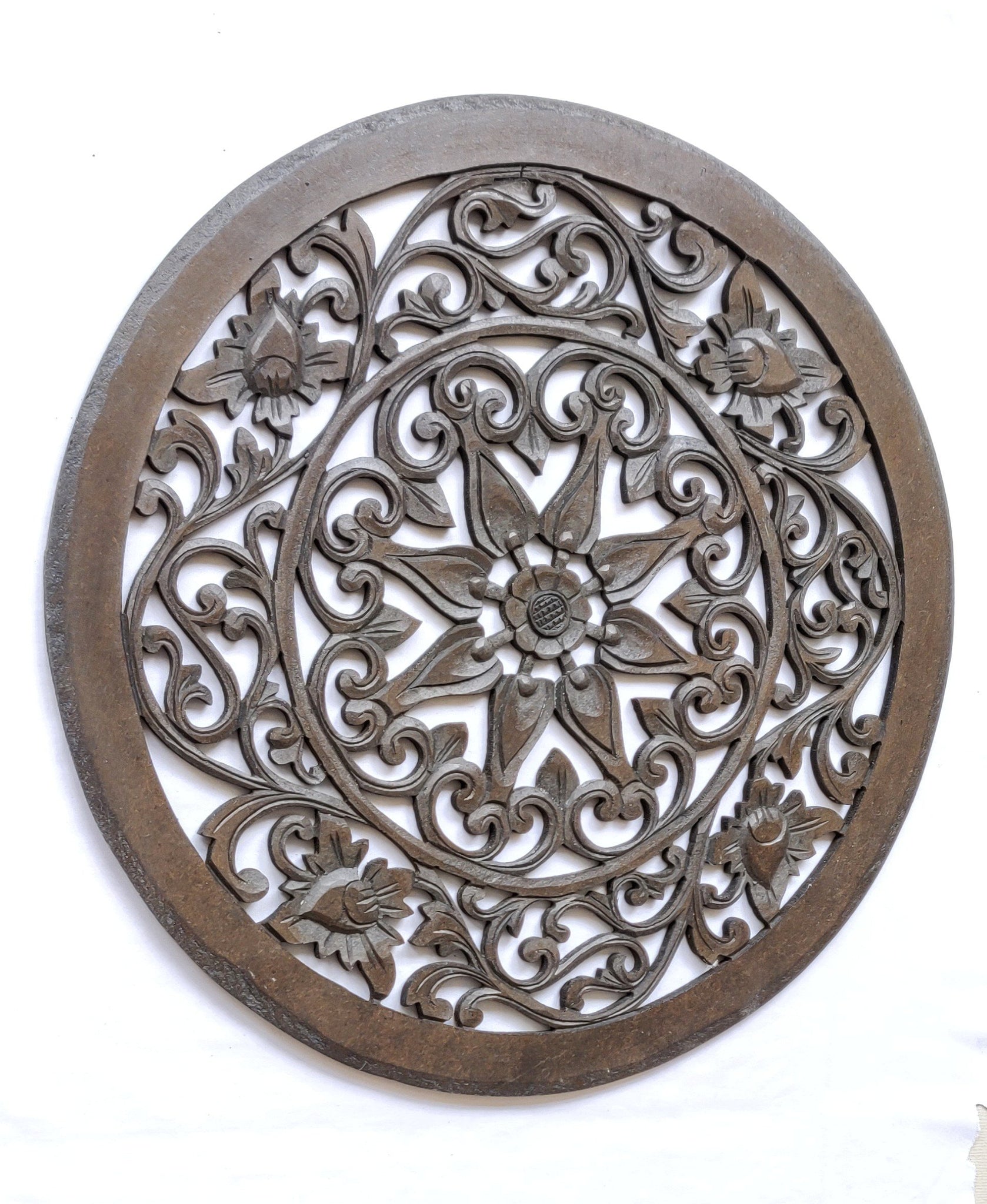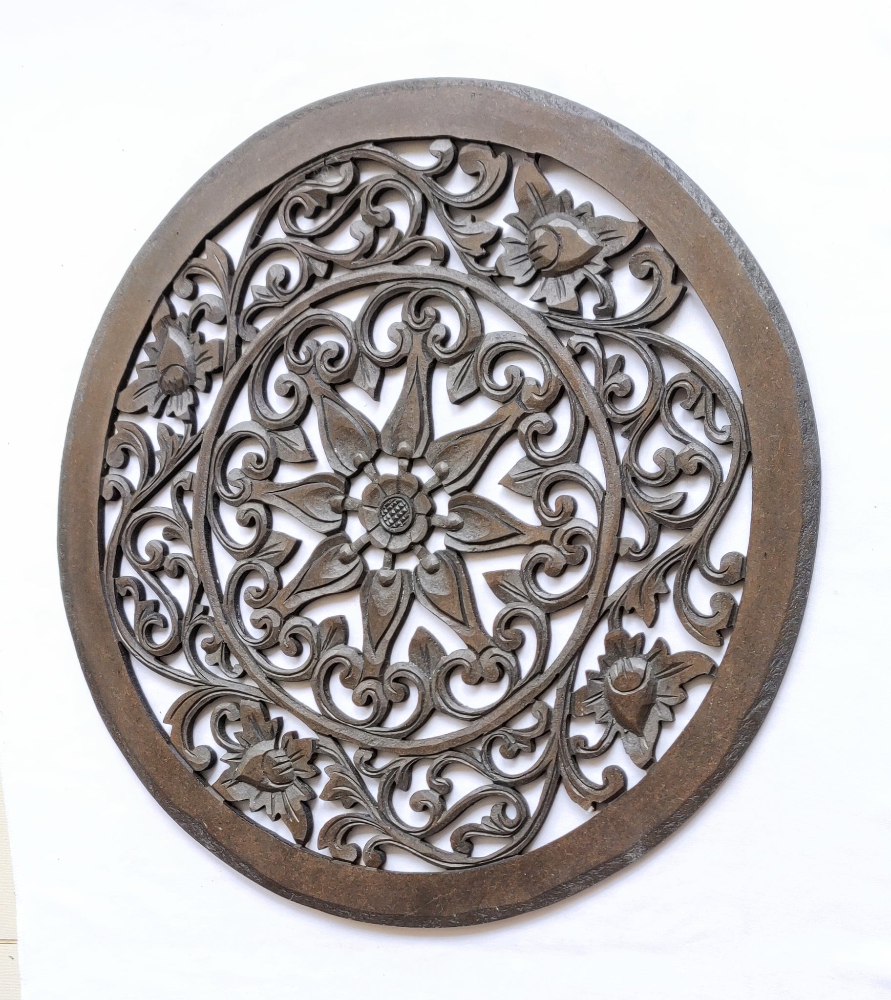 Home Decor. Floral Round Relief Panel Carving, "Royal Flower"
