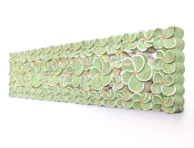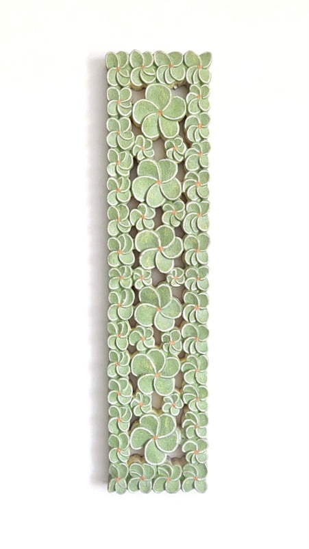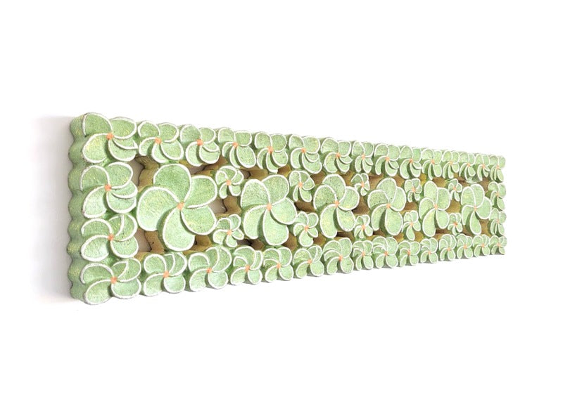 This unique piece is hand carved by talented woodcarvers and hand painted. The panel can be hung horizontally or vertically.