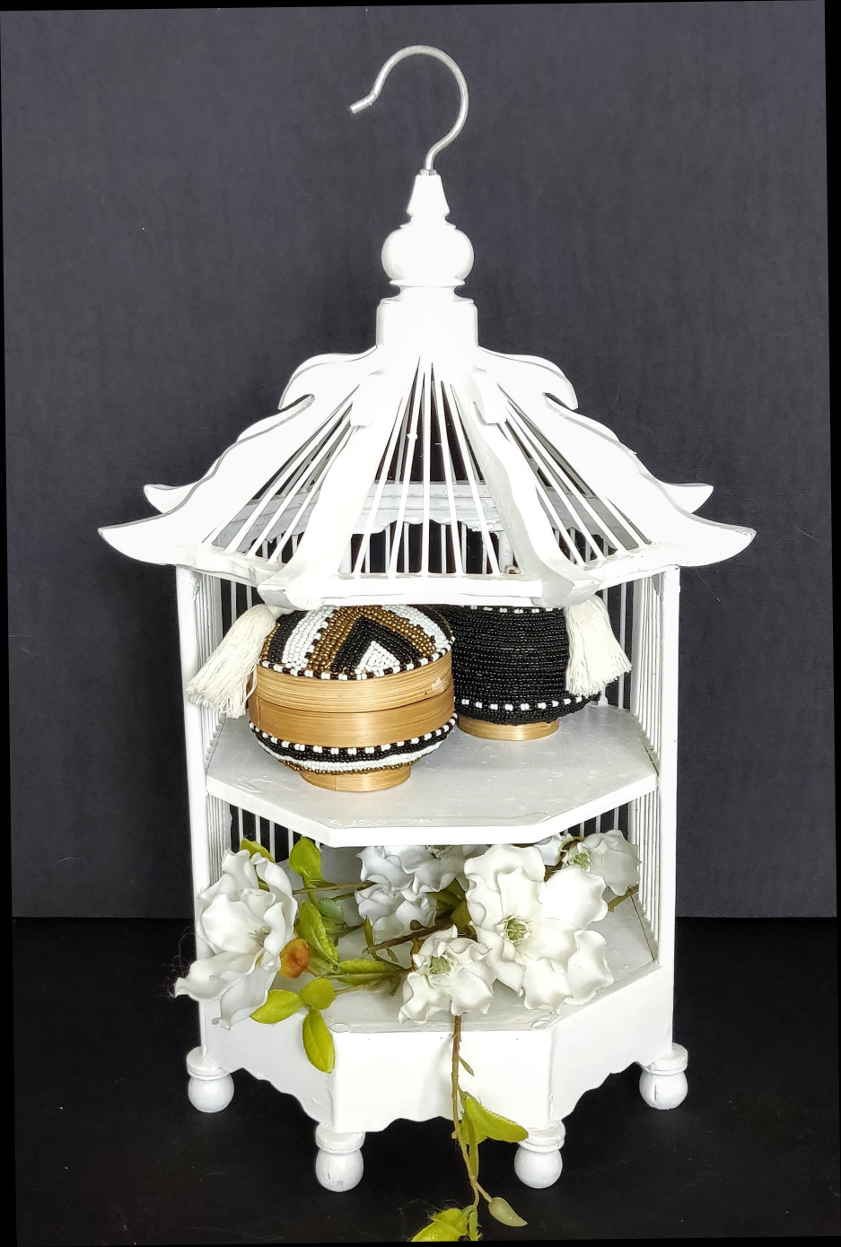 Home Decor. Beautiful Decorative Rustic Bamboo Bird Cage Shelf.