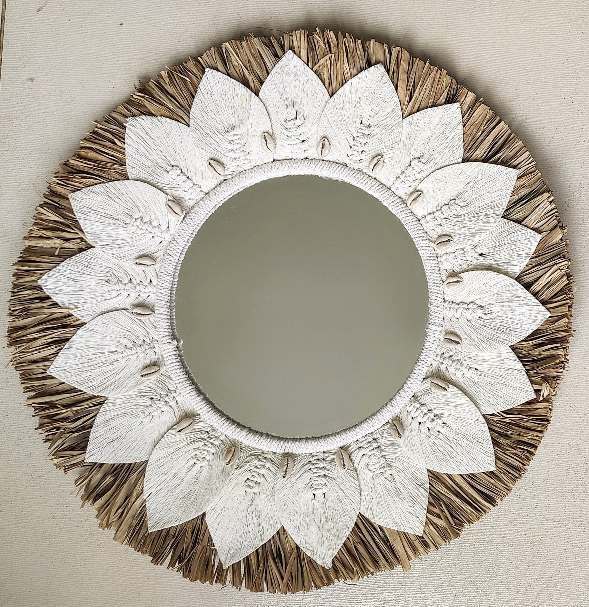 This is a Large Handmade Round Leaf Mirror Macrame Boho Wall Decor.